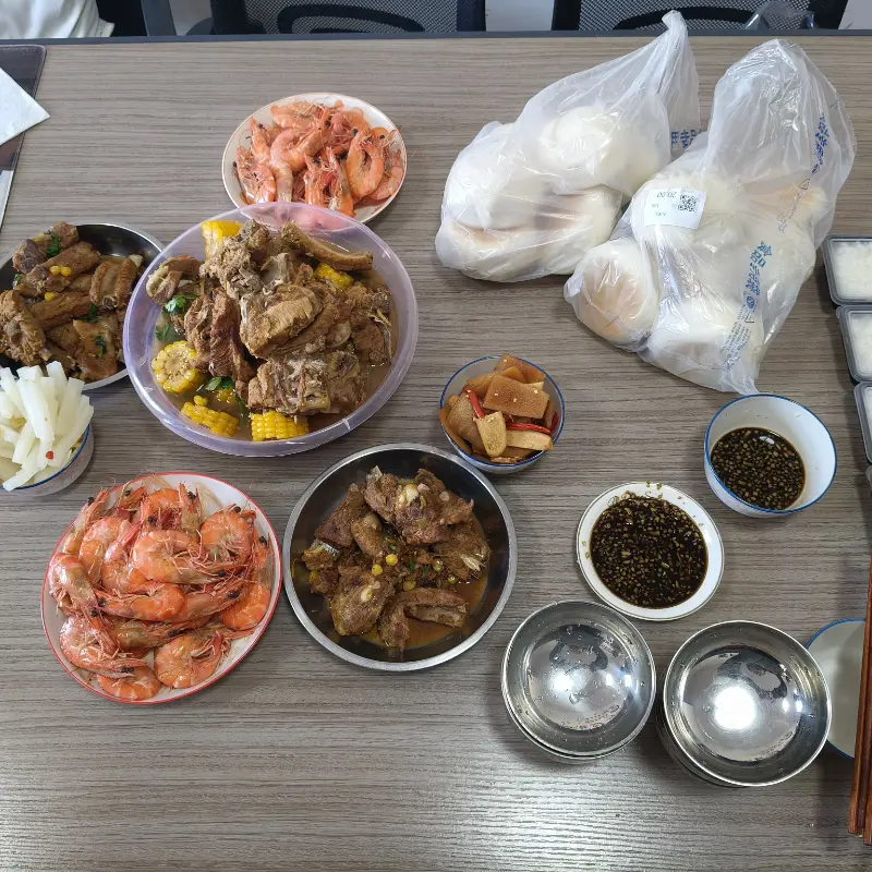 Tuan Xu, yang biasanya sibuk, mengambil alih dapur sendiri, menunjukkan betapa pandainya dia membuat beberapa hidangan tradisional ala rumahan. Setiap orang yang ada di sana terus mengatakan betapa hebatnya mereka. Sementara itu, Manajer Cui memasak sup jagung dan iga babi yang terkenal, yang dimasaknya perlahan. Iganya dimasak perlahan dan lembut, membuatnya lembut dan lezat, dan jagungnya menyerap saus yang lezat. Hidangan ini merupakan perpaduan unik antara manis dan gurih, meninggalkan cita rasa yang nikmat sekaligus berkesan. Kejutan yang menyenangkan adalah mitra kami mengirimi kami sekotak acar sayuran yang lezat. Lauk segar inilah yang dibutuhkan setelah semua makanan kaya itu. Rekan kerja berkumpul, bersantai dan tertawa, mengesampingkan kelelahan hari kerja. Acara ini sederhana namun penting. Hal ini membuat anggota tim menjadi lebih dekat dan menunjukkan betapa ramahnya mitra kami. Seluruh kantor terasa seperti satu keluarga besar dan bahagia.
